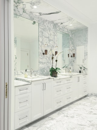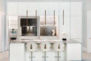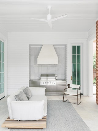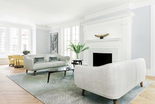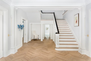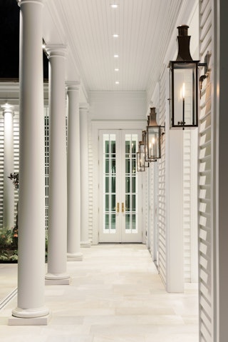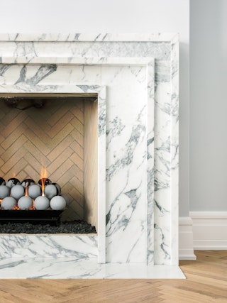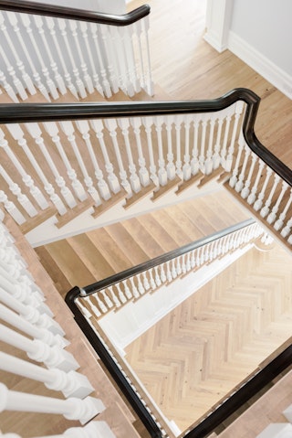 Original architectural plans were used to recreate plaster moldings, wood trim and other details such as balustrades, cornice and roof eve details. The basement walls were completely rebuilt, foundations leveled, and new supports built to ensure the home would stand for the next century and beyond. Inside the house, much of the original staircase and fireplace woodwork was preserved along with the original brass door hardware. A repurposed horse stable door is now a barn door for a bedroom in the re-built carriage house.
