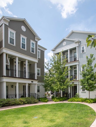 The design of Bell Heights Cottage is contemporary Craftsman with traditional interior. The three and four-story home’s Craftsman style curb appeal showcasing Artisan Hardie two tone finish, classic window and door trim, balconies at each floor with decorative iron railing and decorative columns by HB&G compliment the neighborhood preference for detailed facades. Combined with modern floor plans showcasing traditional interior design expressing decorative ceiling beams, Craftsman window and door trim, and rustic look wood flooring, offer a cozy yet open living space not normally associated with townhomes.