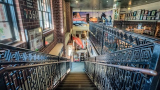 Katz’s Deli building on lower Westheimer was originally the old Tela’s Restaurant. The restaurant closed and the building was essentially taken over by the Resolution Trust Organization (RTC) during the S & L crisis in the early 80s and 90s. A new owner purchased the building and then leased it out to a bar owner to renovate the building. Unfortunately, during the construction of the project, the bar owner died, and the building stood vacant with the streets on Westheimer and Crocker blocked with wood framed buttresses holding up the exterior walls on or about 1996. The intent was to preserve the location of the existing façade so as not to have to comply with the setback requirements at the time on Westheimer, which were 25’-0” and Crocker, which was 10’-0”. The neighborhood desperately wanted this eyesore dealt with and the site and building were deferred to the City of Houston Buildings and Standards Commission, where the commission was charged ordering the owner of the property to secure, repair, or tear down the structure. With Katz’s Deli interested in leasing the building, the commission made the decision to allow the owner to repair the building, seeing that Katz’s Deli would be a benefit to the community. We teamed up with Barry Katz to design the new two-story restaurant, reflective of and taking design elements and cues from the original Katz’s Deli in Austin, Texas, a mainstay from the 80s and 90s that was always the end destination after a torrid night on 6th street to get something to eat before heading home. The interior was also Influenced by the eclectic nature of the iconic New York Deli from the mosaic tile floor to the stamped tin ceilings. The stair railing and detailing were inspired by the Pennsylvania Station in New York and the brick pattern around the perimeter emulated the checkered pattern of a yellow checkered cab in New York among many other details.