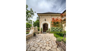The residence is a French Country home that is approximately 7,500 square foot custom designed home in Bellaire. The home has a private courtyard entrance with the pedestrian entrance separate from the vehicular entrance. The home was scaled down at the front with single story forms to address the human scale as one approaches the home. Stucco and stone finishes were primarily used on the home, with stone used at the entrance form to emphasize its importance.