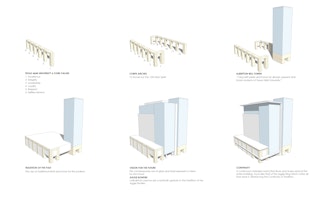 The design also incorporates a continuous unbroken band that flows and wraps around the entire building, much like that of the Aggie Ring which unites all that wear it. It connects all of the building elements together, representing the cohesiveness and flowing continuity between the traditions of the past and the growth into the future, between the current student body and the alumni who strongly embody the core values of the university and carry them throughout their lives to pass on to their children and future Aggies. The glass tower alludes to the Albritton Bell Tower, an iconic structure at the university, representing the classical order of base, body, and pediment, with the eight columns represented by the eight vertical bands of glass. At the base of the building are cylindrical columns, a symbolic gesture to the tradition of the Aggie Bonfire emulating the fortified center pole that the stack is built around. The underside of the porte cochere would be finished in wood, representing not only the wood of the Bonfire, but eluding to the natural material of the surrounding forest.